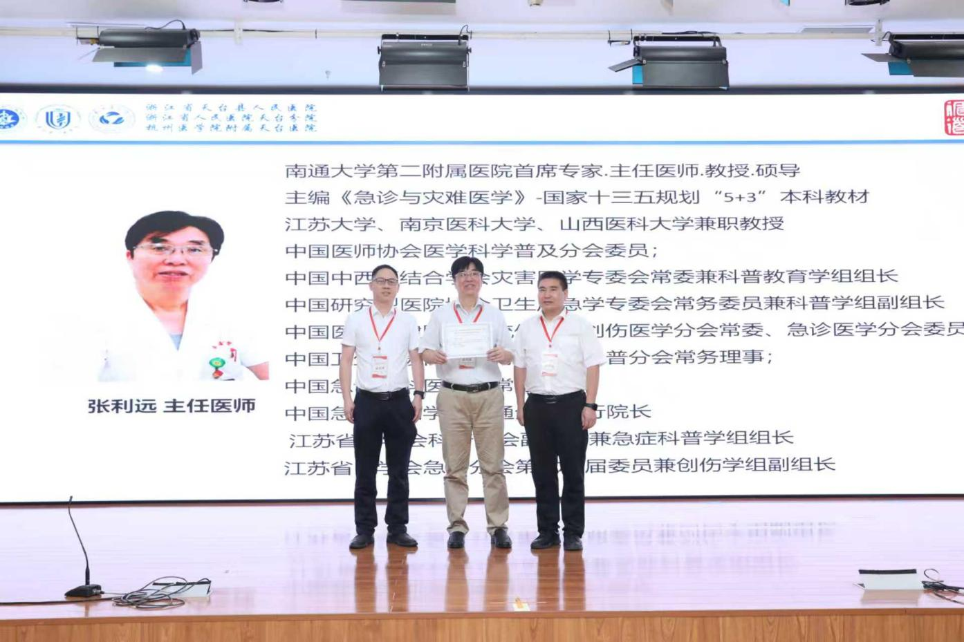 上图:2025年9月17日,张利远教授应邀赴浙江省台州市创伤医学学术会议作了“创伤患者死亡病例剖析”专题报告。图为大会主席向张利远教授颁发“大会报告证书”。