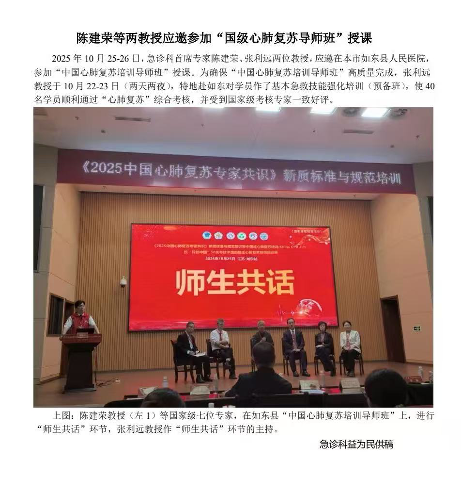陈建荣等两教授应邀参加“国级心肺复苏导师班”授课